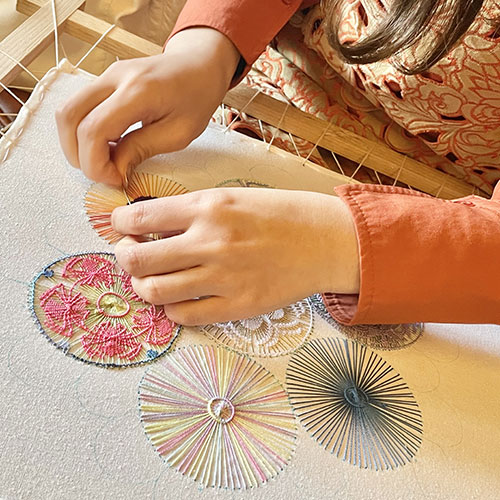 会場では、伝統を大切にした作品展示に加え、誰でも簡単に美しい作品を仕上げることができるキットやワークショップをご用意。はじめての方も、ニャンドゥティの魅力を気軽に体験していただけます。