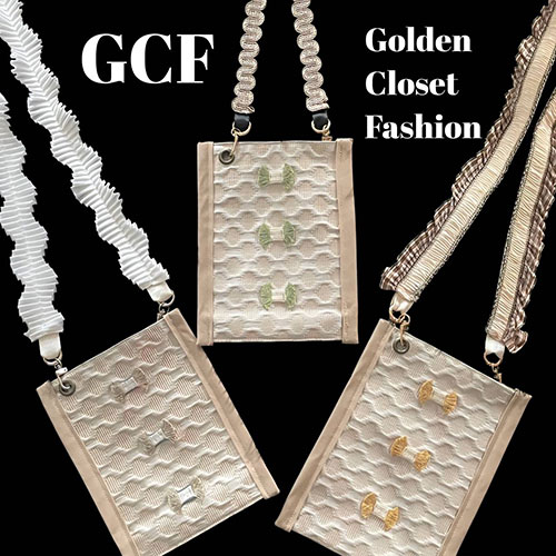 GCF (Golden Closet Fashion)は、Itsuko とHiRoe が旅先や日常で出会い心惹かれた“ときめき“を集め、今の気分を添えた手仕事で仕立てる、遊び心あふれるバッグやストラップなどのオリジナルブランドです。