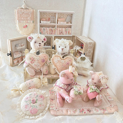 ぬいぐるみ作家・講師。フランス小屋から生まれる可愛いぬいぐるみをテーマに「うさぎとねこ」ぬいぐるみ教室を主宰。お砂糖菓子のようなやさしい世界観の〈Sweet Teddy〉をはじめ、物語を感じるぬいぐるみ制作、オンライン講座、カルチャー講座、作品展を中心に活動し、大人の女性が心をほどく創作時間を届けています。