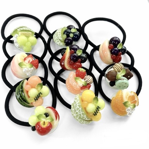 樹脂粘土で作った苺、メロン、ぶどう、いちじく、桃などのフルーツ作品を使える雑貨にしています。