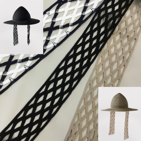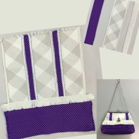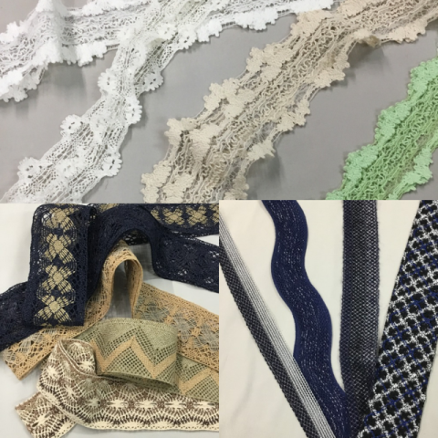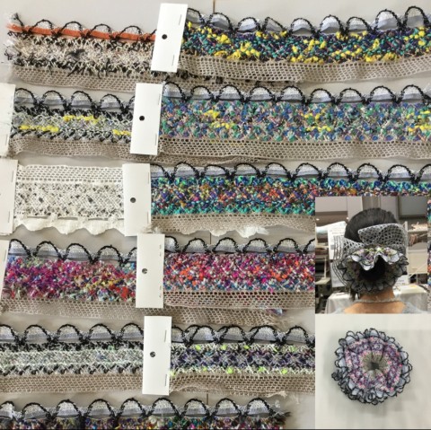 様々な素材の糸から、柄も配色も替えられ機械で織り上げられる。