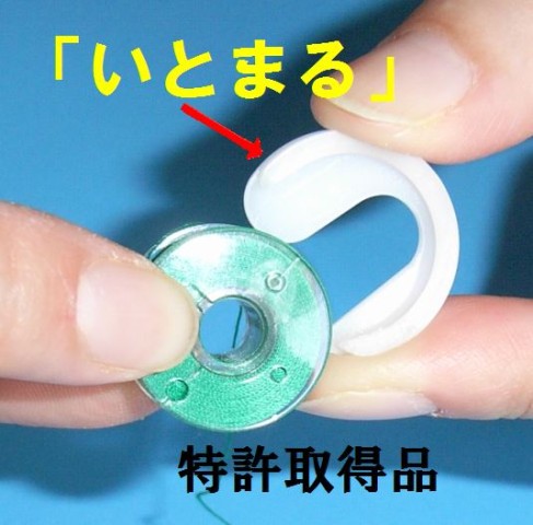 特許を取得しているボビンの糸止め「いとまる」の販売と配布。
