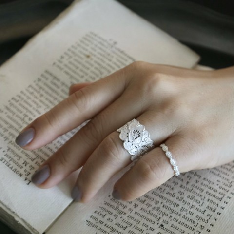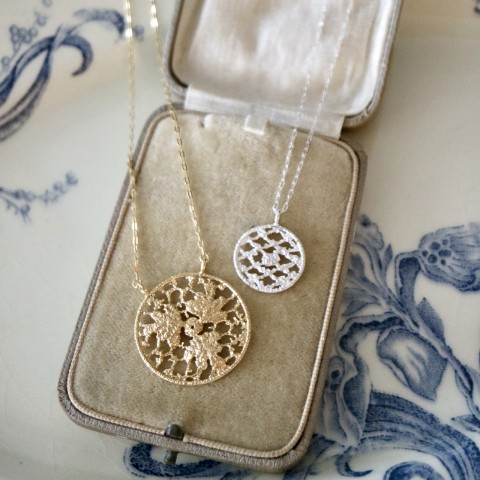 アンティークレースを象りシルバージュエリーに仕立ててお届けします。