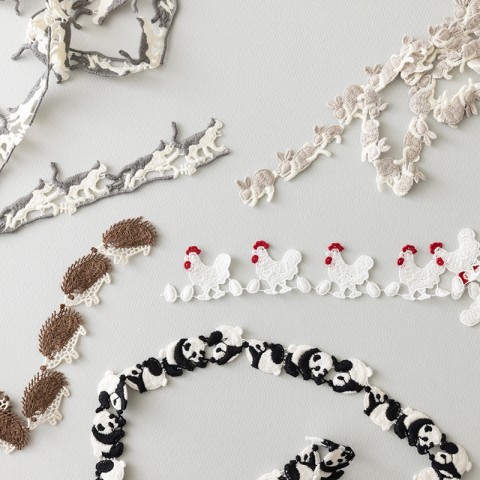 ホビーショーでは、ケミカルレース、刺繍生地をたくさんお持ちします。国産のレース機でゆっくり織り上げる手刺繍のようなレースたち。思わず笑顔になる、楽しい可愛いレースたちをお楽しみください!