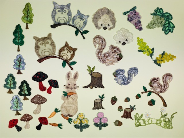 主に細い紐、太めの糸、コード状のテープ、幅広のテープなどを使ったレース作りをしています。形状はアニマルシリーズ、花シリーズ、楽器シリーズ、細幅シリーズ、等々バッグなどや、パッチワークキルトにはめ込めるパーツ、ファッション装飾、ビーズブローチのグランド素材などとして、多用途に展開できるものを提案させていただきます。材料の探索から、オリジナル素材からの作品つくりを心がけているので、皆様の作品つくりの手助けになれば幸いです。時間の許す限りご来訪いただいた皆様と、作品つくりのお話ができれば嬉しい限りです。