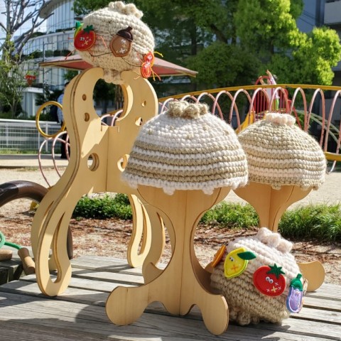卒業後は、機械が無くても木工と制作過程が似ている毛糸やフェルトでの制作を始めました。